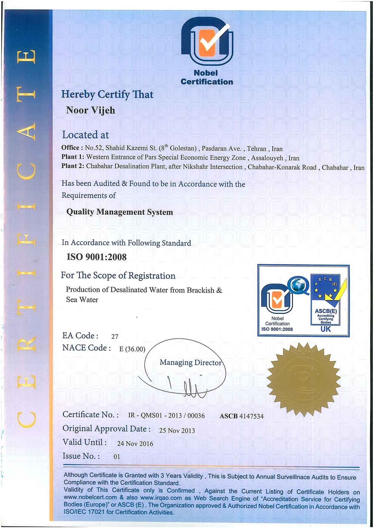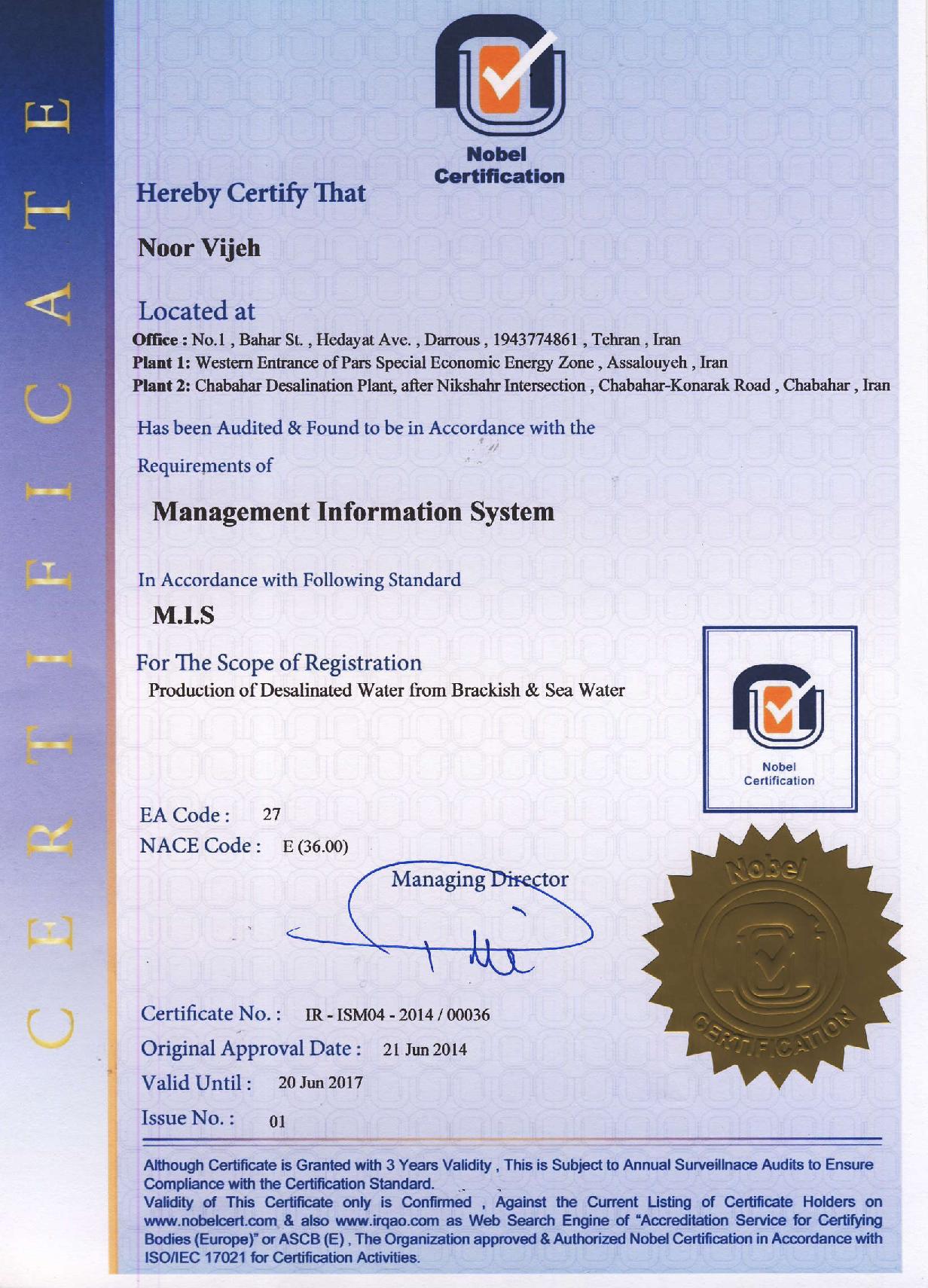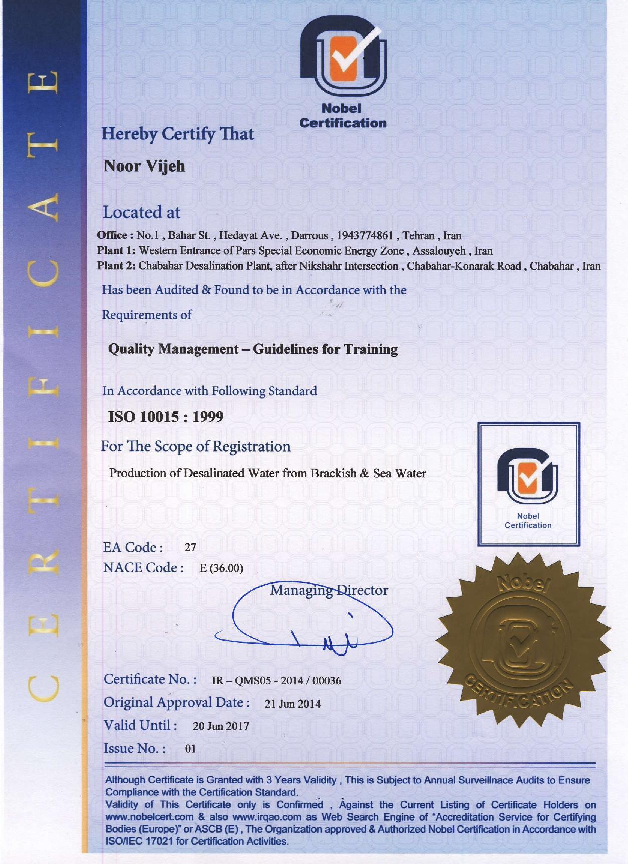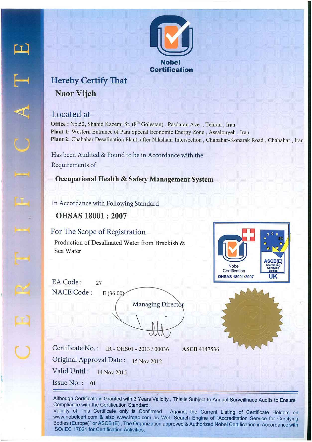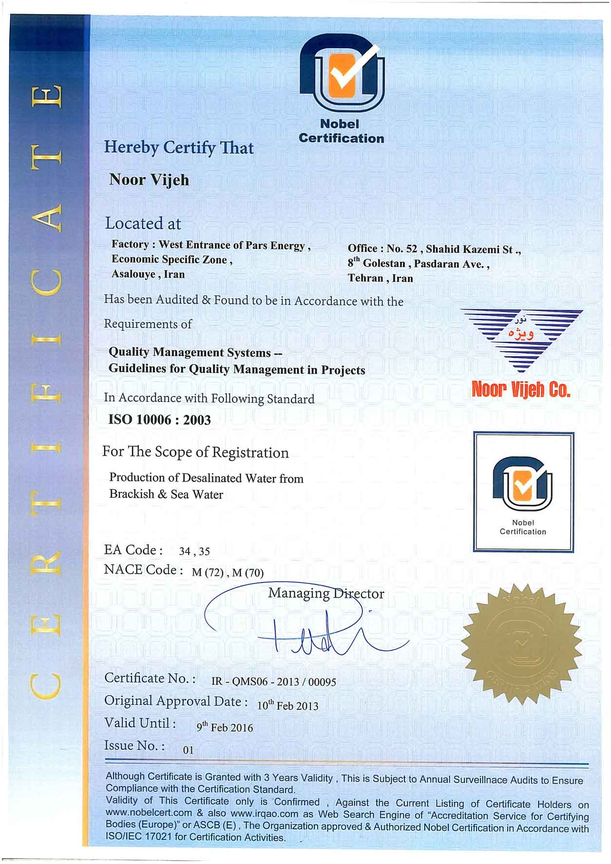 شرکت نور ویژه مفتخر به کسب گواهی نامه های متعدد از سازمان های معتبر بین المللی می باشد.